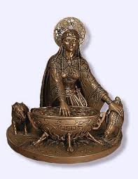 Na tradição galesa, o caldeirão do renascimento é associado com Ceridwen, deusa do grão e da inspiração, a suprema iniciadora e senhora dos mistérios. Nele ela ferve a poção iniciadora, a fonte de todo conhecimento. Em sua função de guardiã da sabedoria, ela pode assumir formas assustadoras, com o propósito de inculcar responsabilidade pelo conhecimento e seus usos.